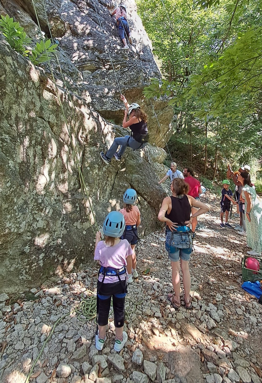 Venez découvrir l’escalade en toute sécurité sur le rocher école du site d’escalade de Mariac !