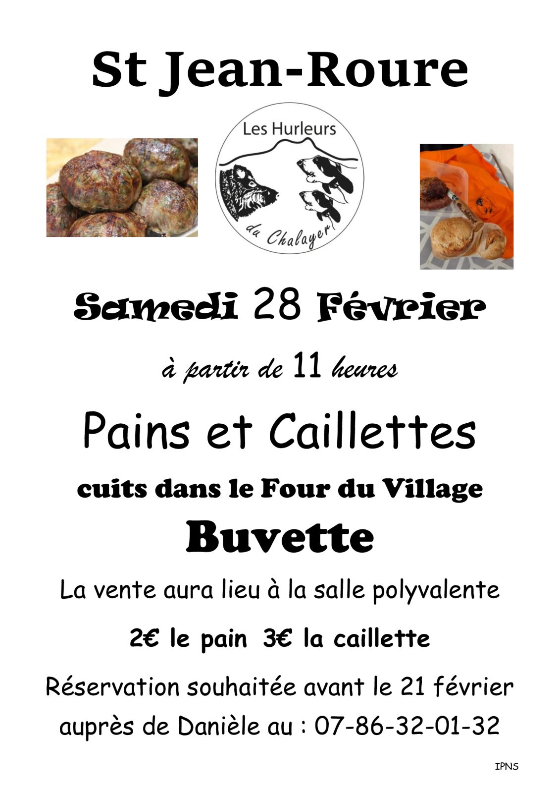 Les Hurleurs du Chalayer vous proposent une vente de pains et de caillettes cuits dans le four à bois du village, une buvette sera également mise en place.