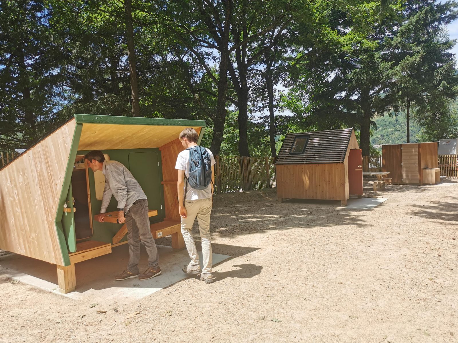 Les Terrasses de La Chèze offrent un cadre paisible et verdoyant, idéal pour poser son sac après une journée de marche ou de vélo. Vous trouverez des cabanes en bois pour 2 à 4 personnes, des emplacements pour bivouac, ainsi que des équipements pratiques : borne de recharge, box sécurisé pour vélos, et tout le nécessaire pour repartir sereinement.