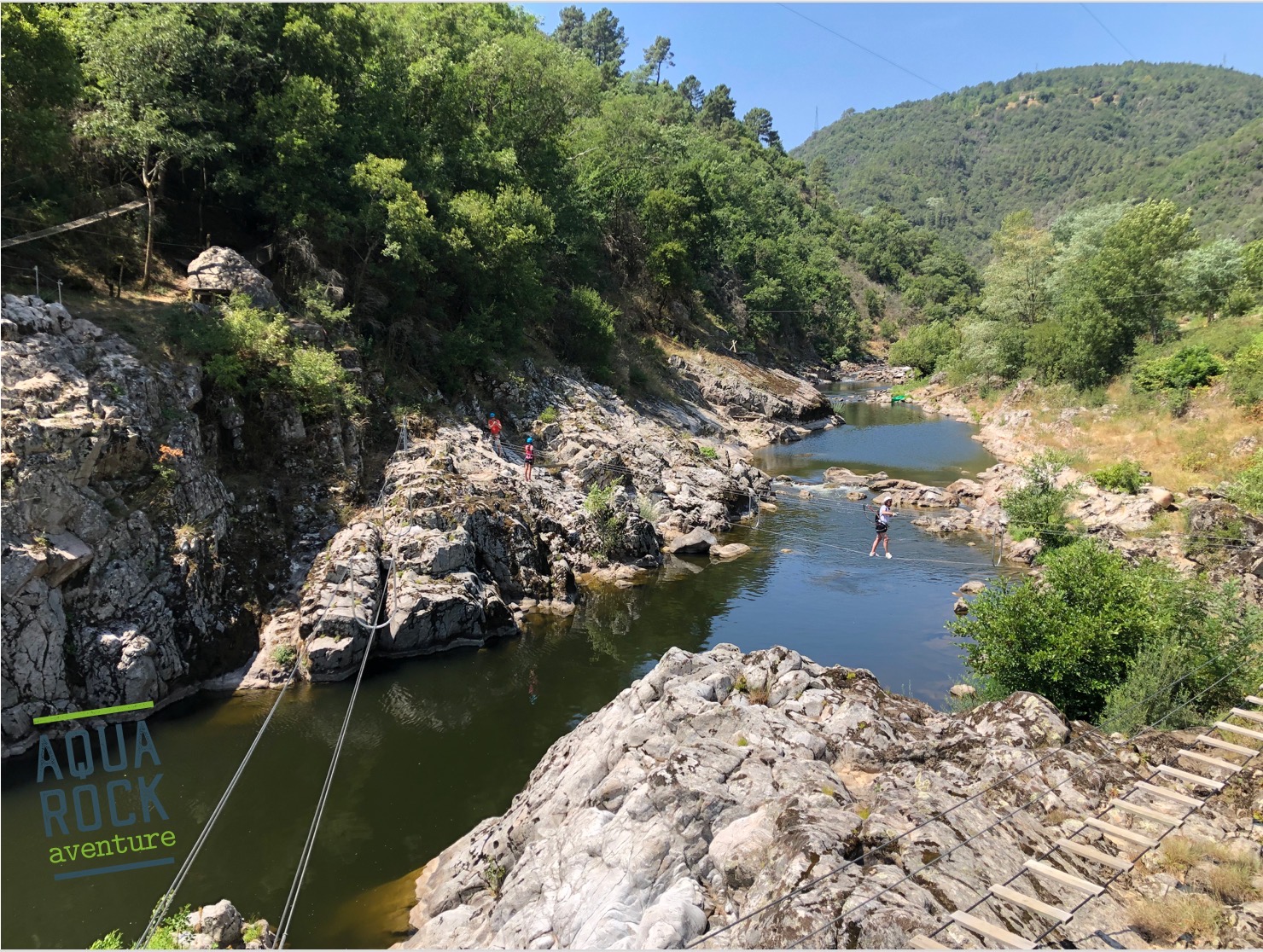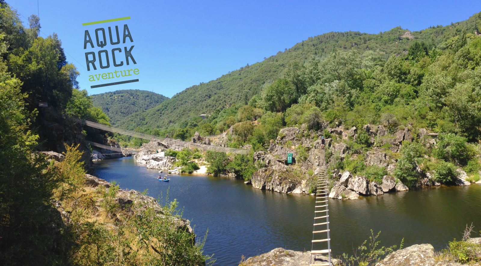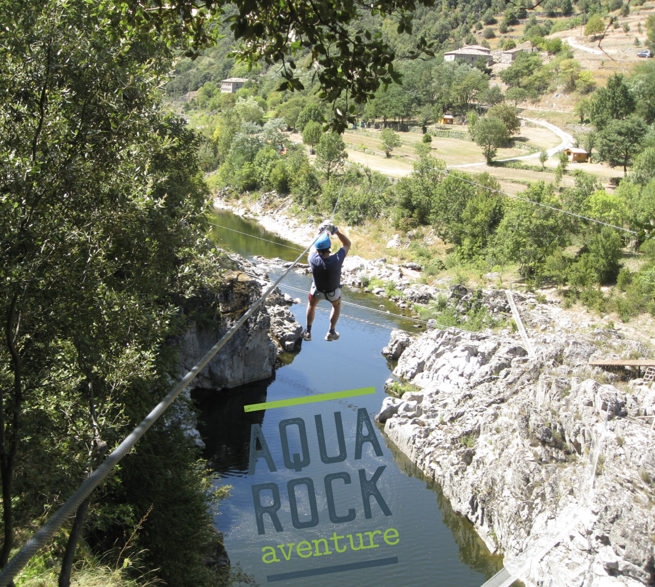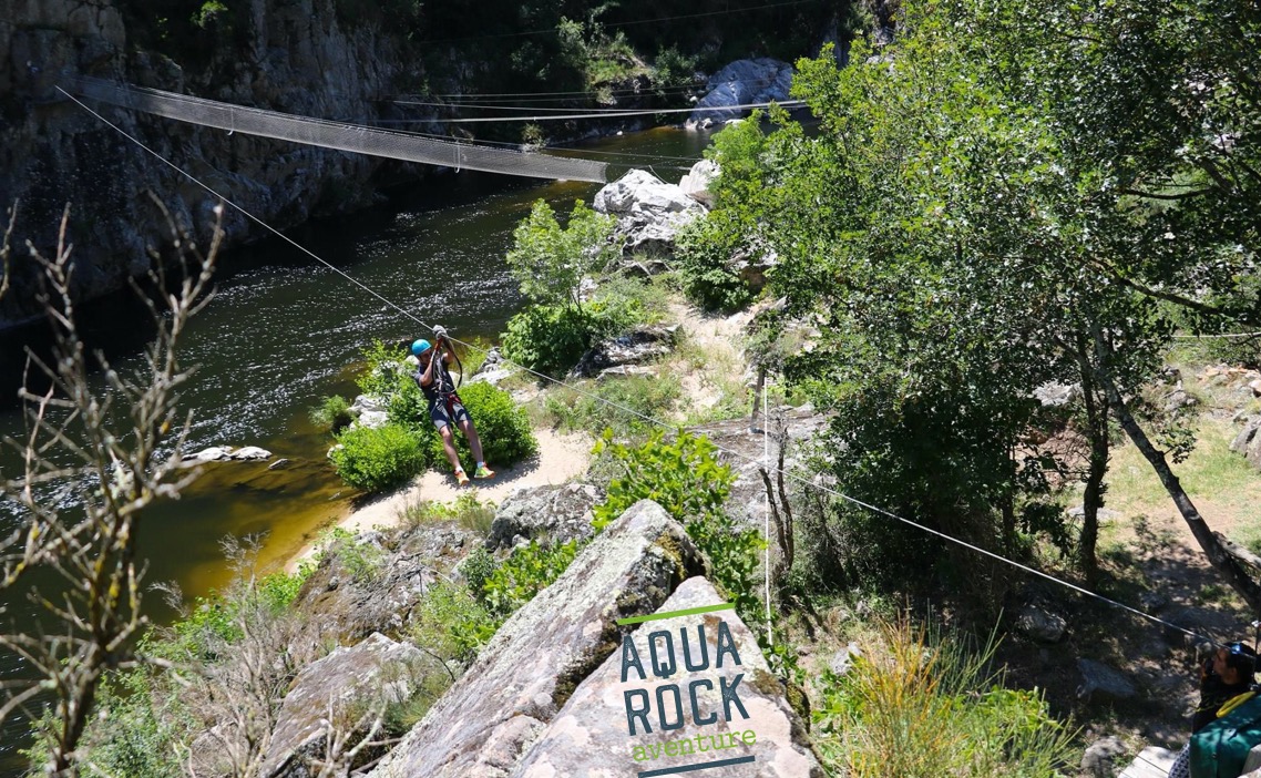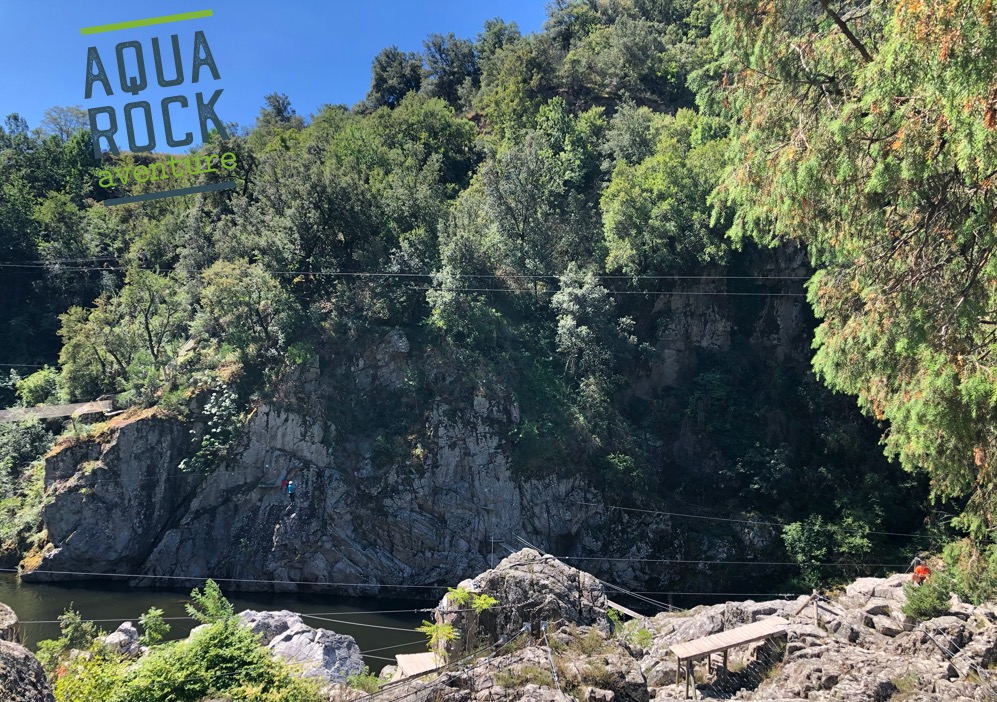 Aquarock Aventure, c'est 10 parcours entre arbres, rochers et rivière, dans le cadre préservé de la Vallée de l'Eyrieux au cœur de l'Ardèche. Accessible dès 2 ans. Chaussures de sports exigées, mineurs accompagnés. Activité sur réservation seulement !