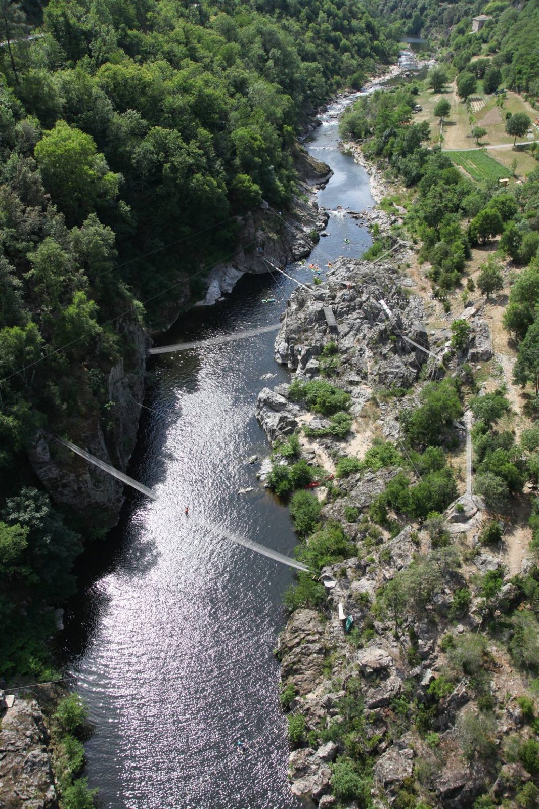 Situé au cœur de l'Ardèche, dans la Vallée de l'Eyrieux. Ouvert à tous, 10 différents parcours vous sont proposés en fonction des envies et sensations de chacun : le parcours des "Loulous" pour les enfants à partir de 2 ans, le parcours des "Pitchouns" et "Babelou" pour les enfants à partir de 4 ans (de moins de 1,20 m), les parcours verts "Lou Pisadou", "Rocaillou", "Cigalou" à partir de 1,20 m minimum, les parcours bleus "Castagnou" et "Artisou" ainsi que le parcours rouge "Foudjou" à partir de 1,40 m avec des passages de Via Ferrata, et donnant accès aux 2 tyroliennes géantes de 250 et 300 m.