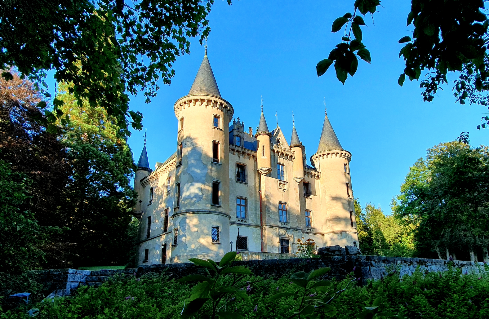 Ce majestueux château néo-gothique fût lors de sa construction en 1857 au top de la modernité et du confort de son époque. Vous arpenterez ses 64 pièces au fil de ses 158 portes et 81 marches de son grand escalier suspendu.