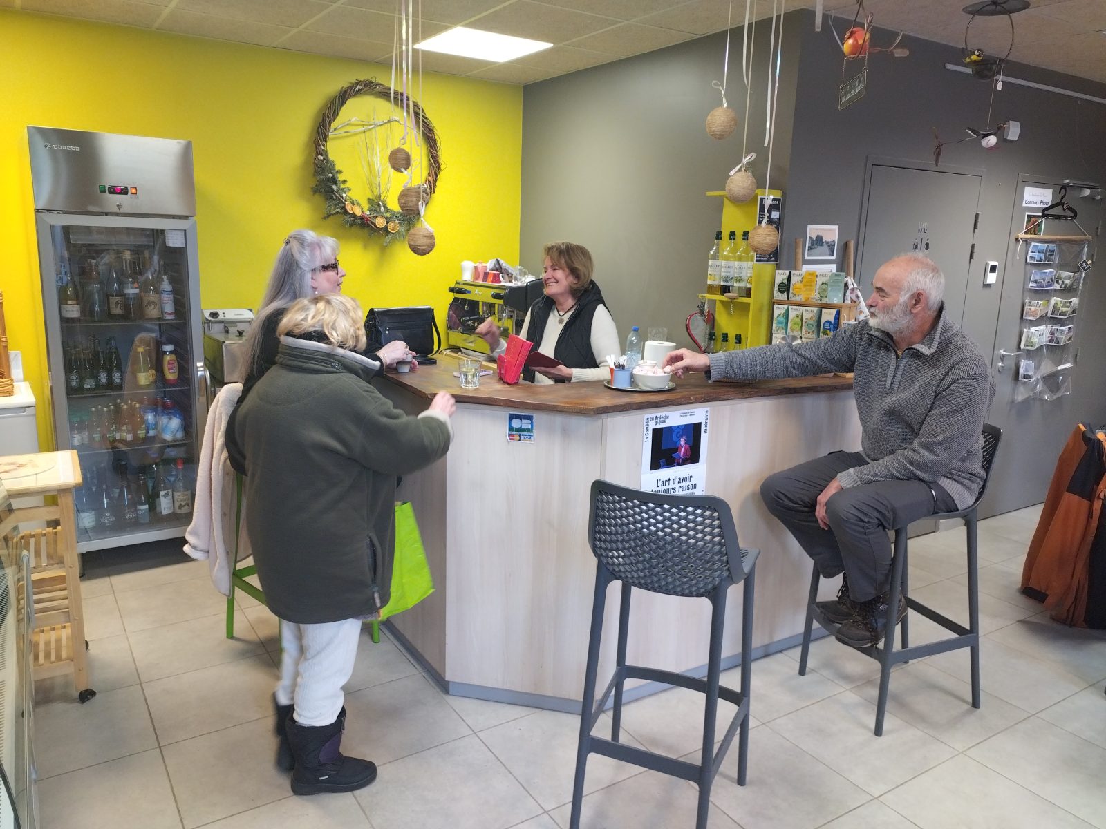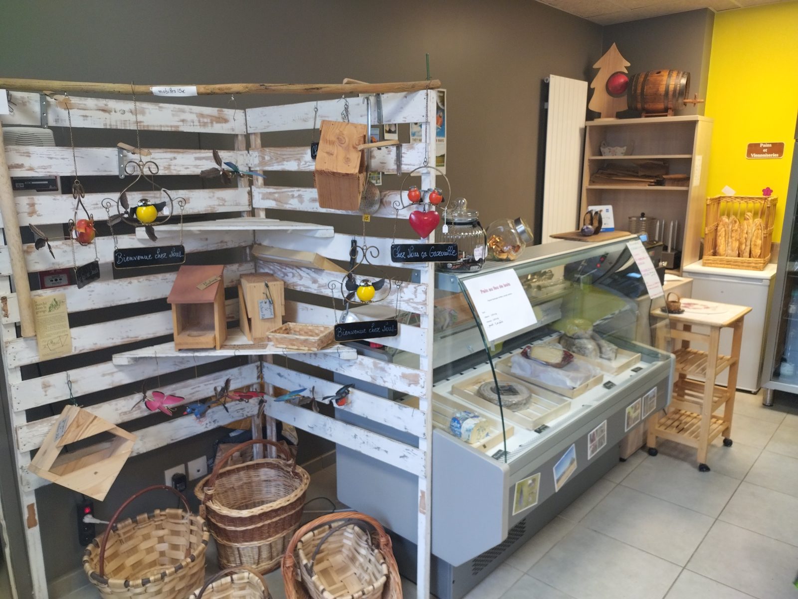 est ouverte 4 jours par semaine. Nous y proposons des produits de l’artisanat local, une épicerie de producteurs locaux, un dépôt de pain et viennoiserie et une fois par semaine du pain paysan, de la charcuterie locale, des fromages de chèvres bio. Un bar permet de déguster des boissons fraiches ou chaudes mais également en été et de passer un moment convivial.