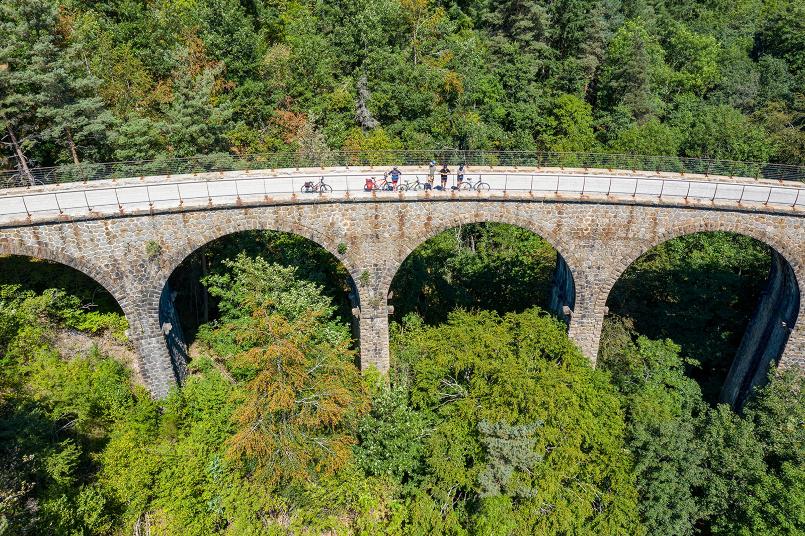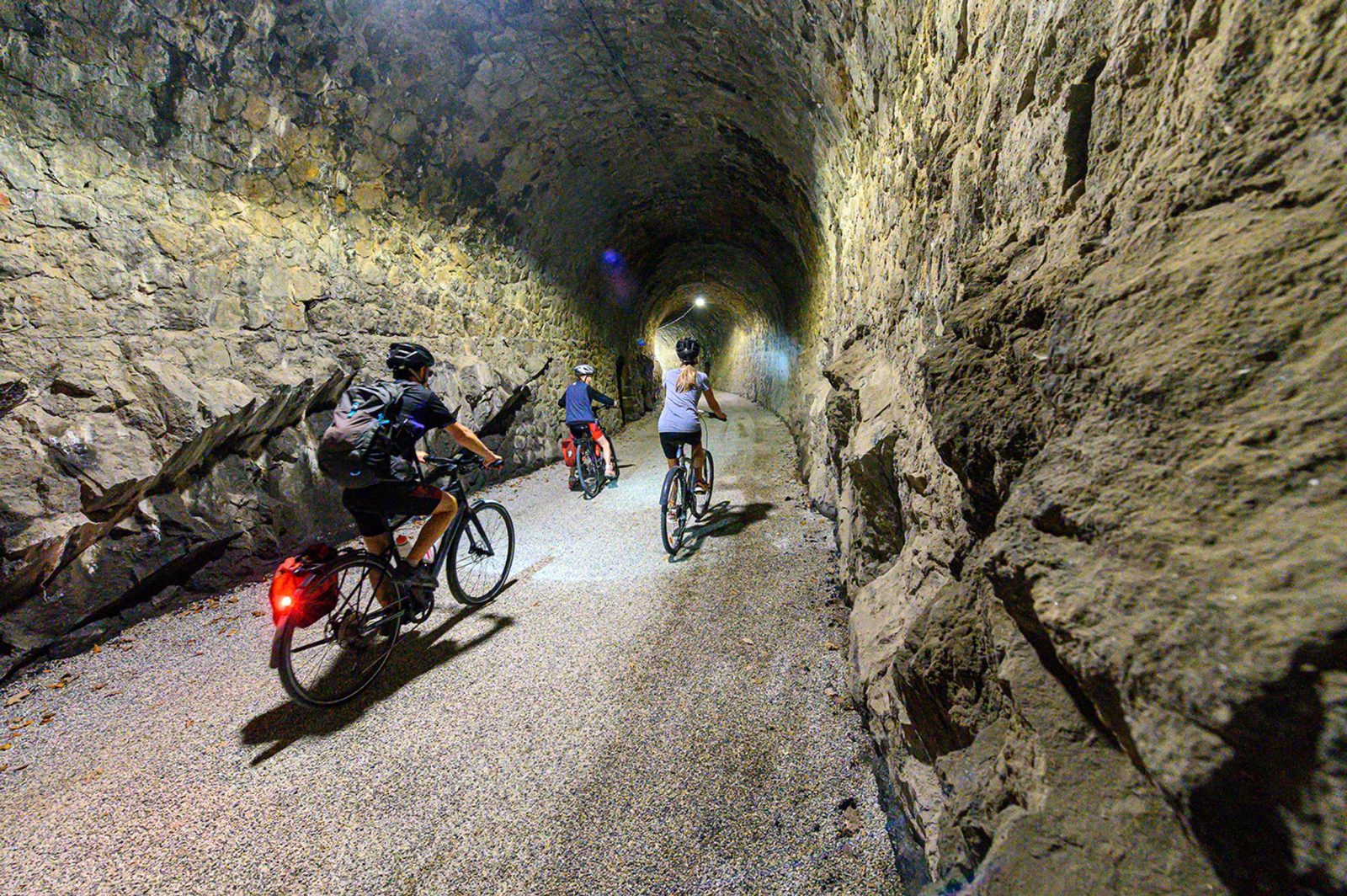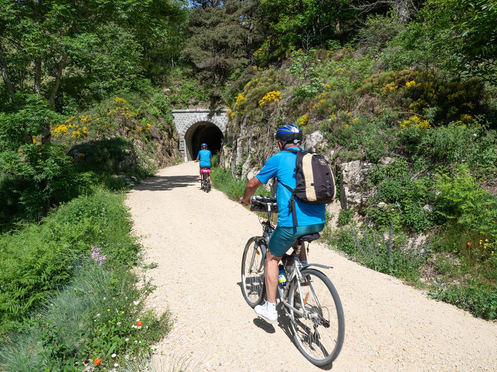La Dolce Via offre 90 km de voie douce aménagée et sécurisée, au coeur des paysages préservés et des grands espaces naturels de l’Ardèche. Ce parcours (qui peut être réalisé en aller-retour, 34 km au total), à faire en famille, vous transporte dans la hau