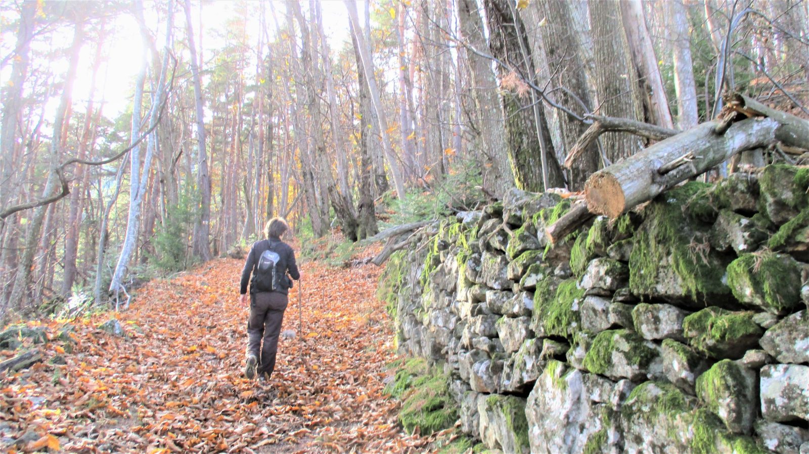 Quitter la route pour monter à droite le sentier entre les murets sur 400 m.