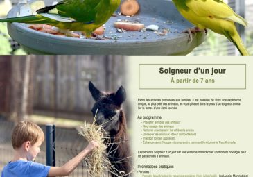 Soigneur d'un jour (sur réservation) : Enfant (7-10 ans) : 45 €, Ado (11-15 ans) : 55 €, Adulte (+ 16 ans) : 65 €