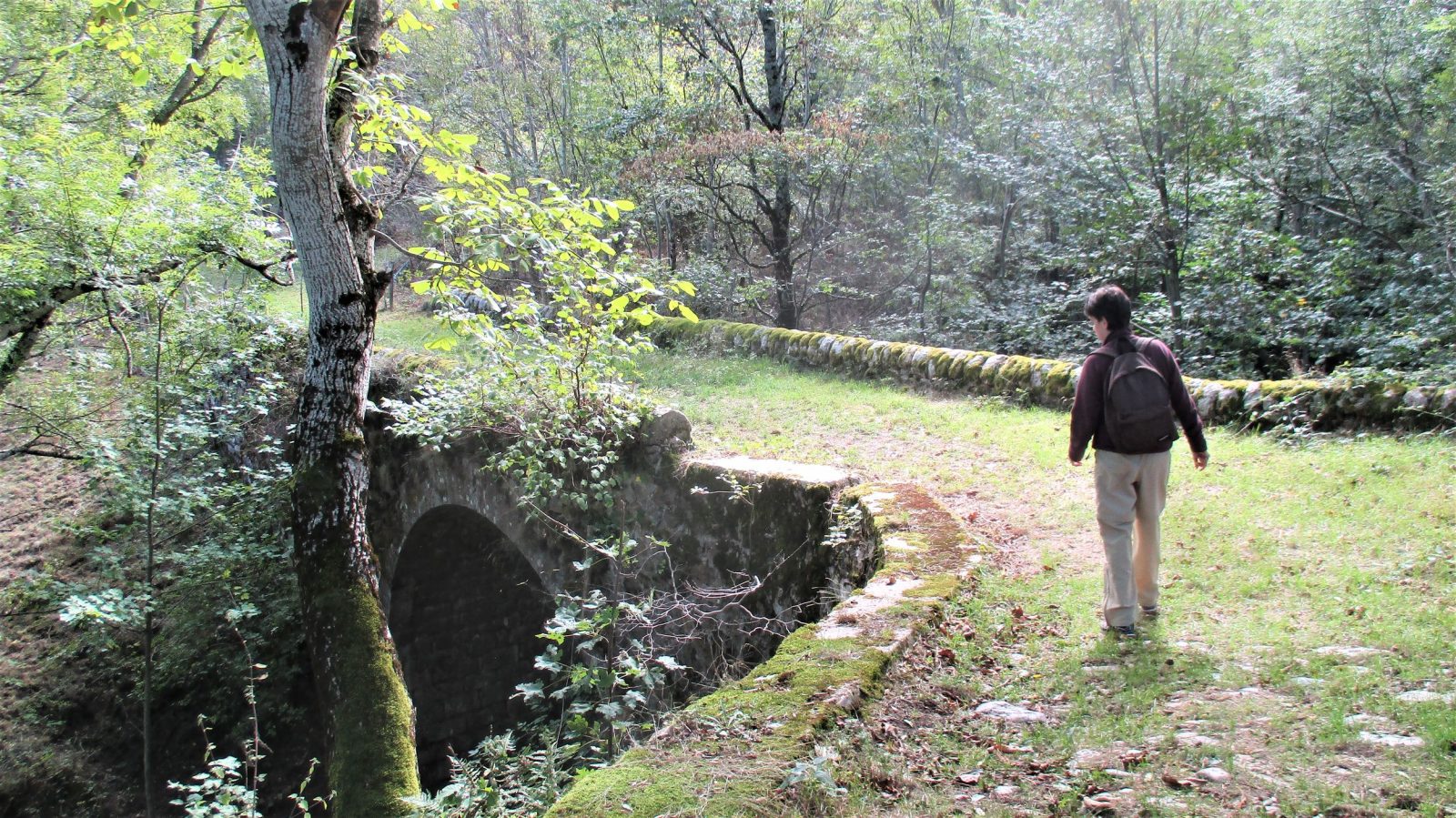 Après le pont de pierre, descendre à droite et passer sous les maisons du Fau.