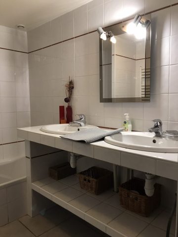 Ce gîte dispose également d'une salle de bain (baignoire, deux vasques) et de toilettes séparées.