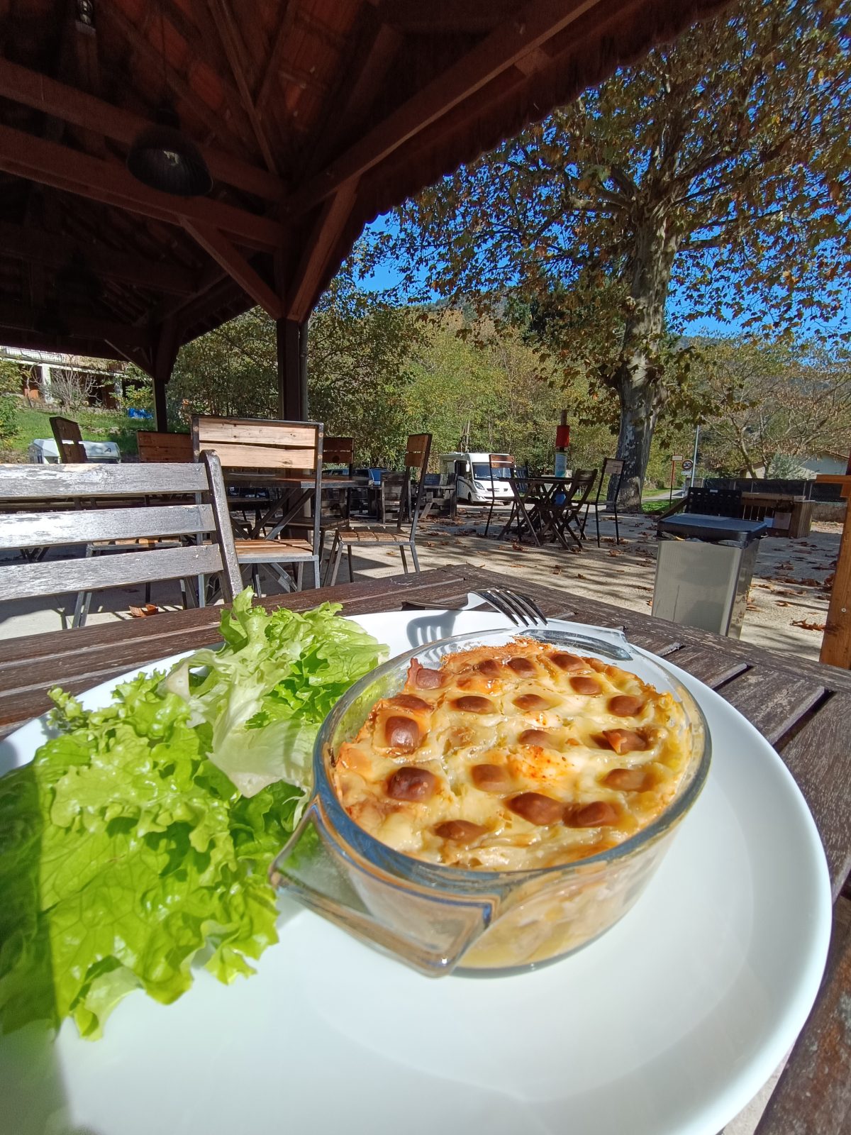 À la carte : plats végétariens, planche de charcuteries et fromages, salades, soupes, en-cas salés faits maison, pâtisseries, glaces et boissons locales...